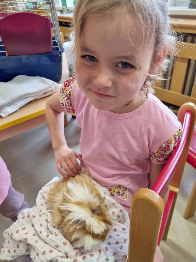 Velkým zážitkem bylo také učení, jak se k morčátku chovat – jak ho správně a jemně pohladit, aby se nebálo, a jak s ním zacházet opatrně a s respektem. Děti si vyzkoušely, jak se udržuje jeho klec, a pochopily, že péče o zvířátko znamená také zodpovědnost a pravidelnou starost.